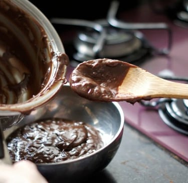 2. Leve ao fogo baixo, mexendo sempre, até a mistura engrossar e desgrudar levemente do fundo da panela.